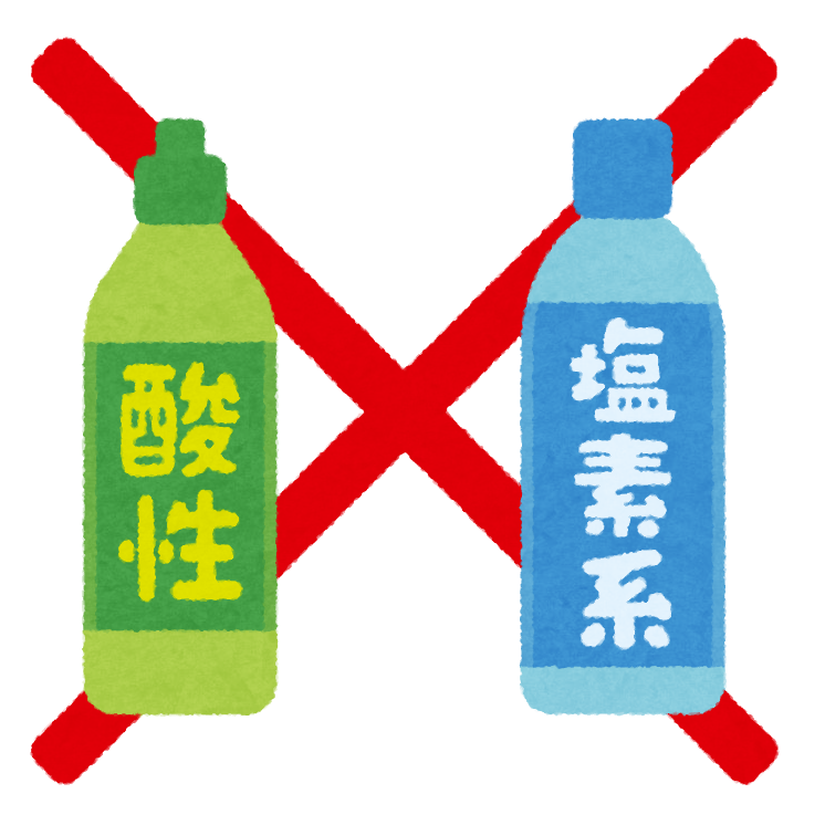 ②便器の清掃には、強酸や強アルカリの洗剤を使わない